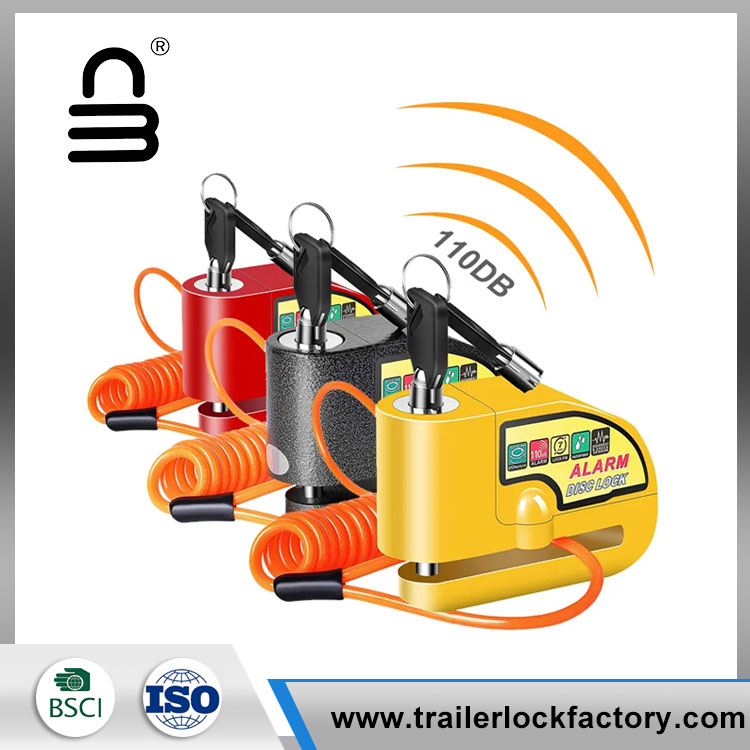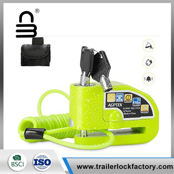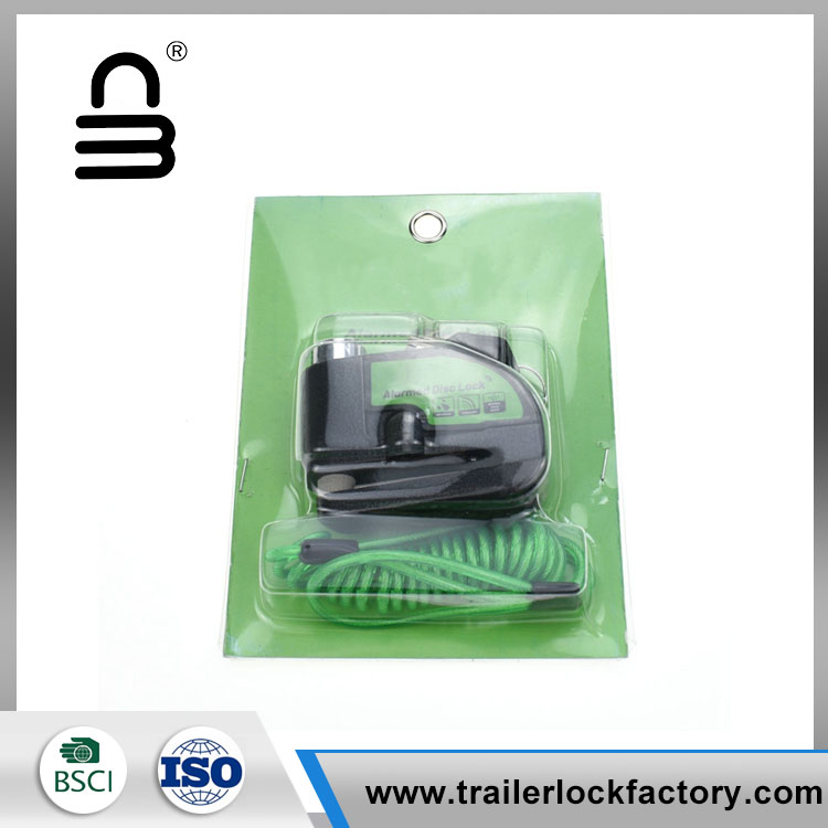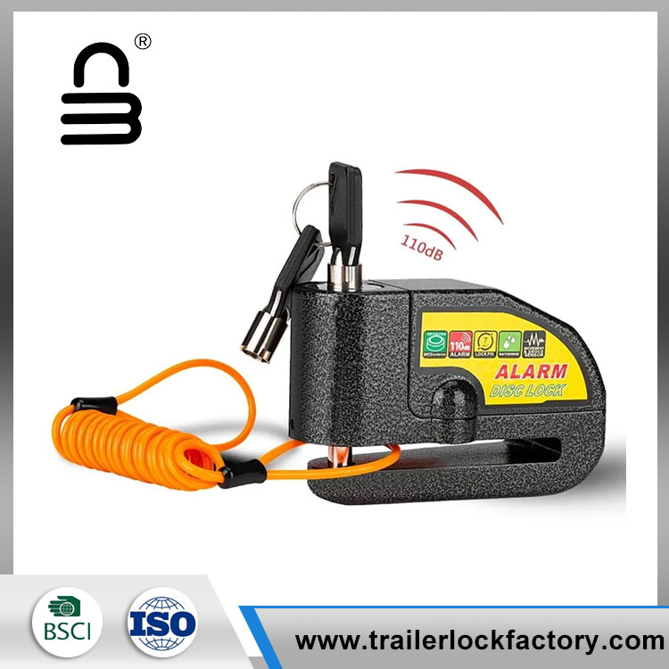 Srpski језик 110db Alarm Bike disc Lock with Reminder Cable -This alarm disc lock built-in sensors detecting shocks and movements will keep your motorcycle safe. 110dB alarm system scares off the potential loss while at home or parking outside, handy for bikers when parking outdoors or at home.