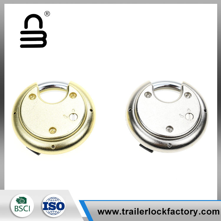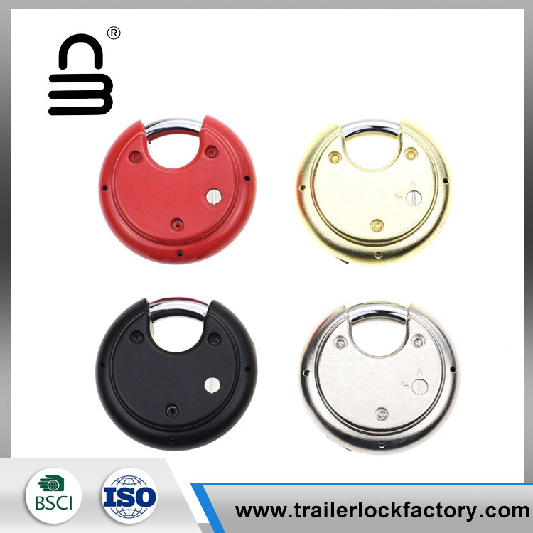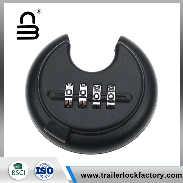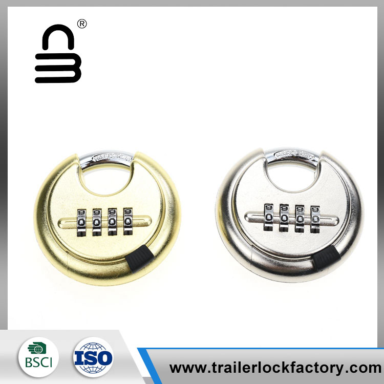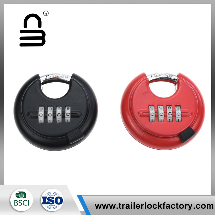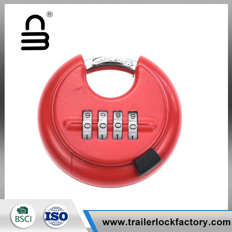 4 digit combination discus padlock -is weather-proof, waterproof, rust-proof and cut-proof, its shackle is 3/8 inch. It can be used outdoors and also suitable for trucks, lockers, storage units, fences, etc.