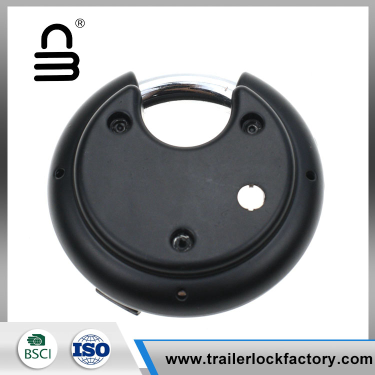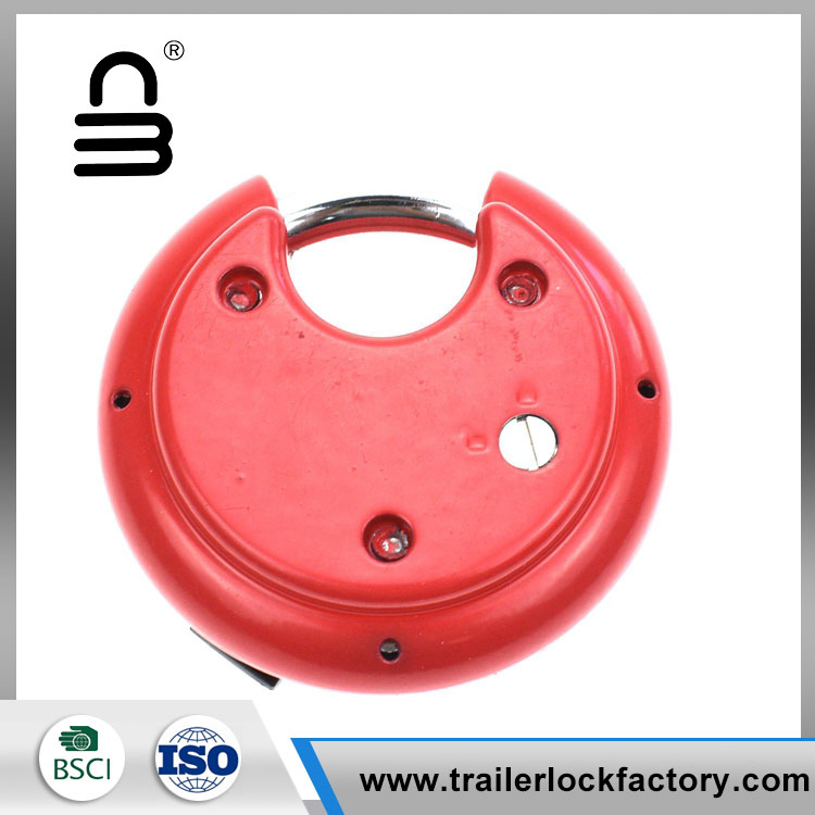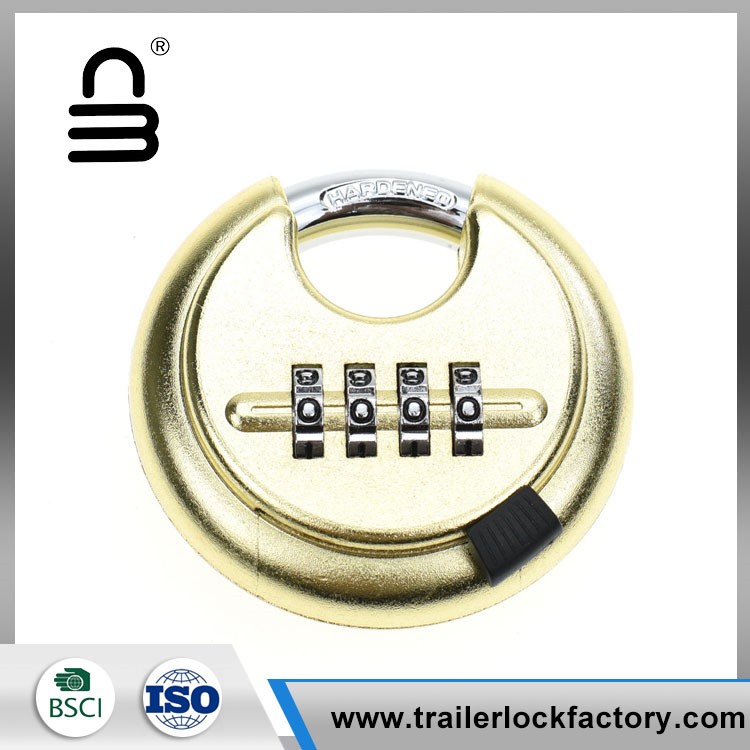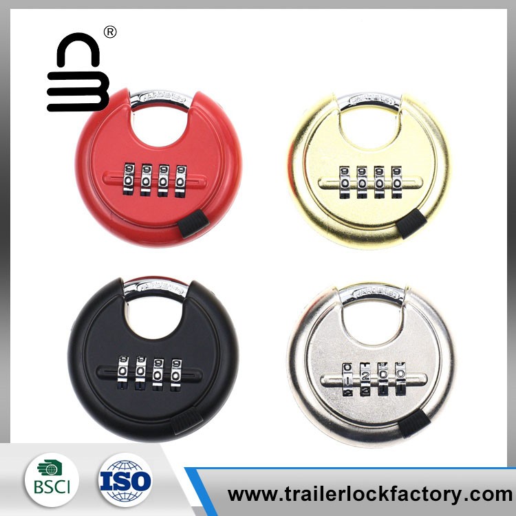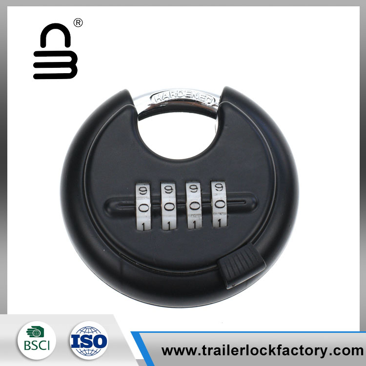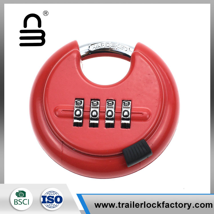 Heavy duty combination disc padlock is protected from threats of bolts cutters and other intrusive tools because of its unique shape and design. The design allows this discus padlock to be protected while easily fitting on most applications. The slide button will not fall off as easily as other locks, safe enough to protect your thumb from being scratched while sliding it open or closed.