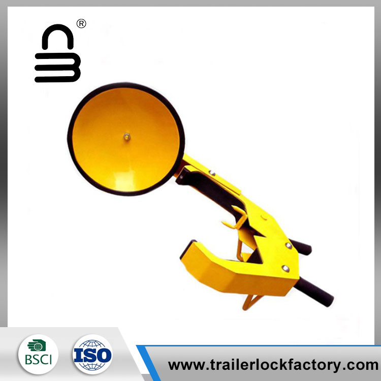 Srpski језик Car Tire Boot Lock -Tire lock made of HC steel, weighing 13 pounds (the raw material determines the quality of the product), is not easily damaged. The bright yellow color can make people subconsciously alert to the effect.
