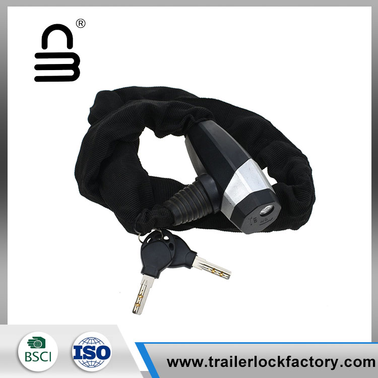 Srpski језик This Chain Key Bike Lock is made of alloy steel material, with high hardness. lock core is designed to prevent technical lock opening. main lock pipe heat treatment hardening, saw resistance, knock resistance, shear resistance adopts double lock, easy to use ,Each set of keys is not easy to copy, The dust cover can block dust, water droplets into the lock core to prevent the lock core plug, rust,The diameter of the chain is 7mm