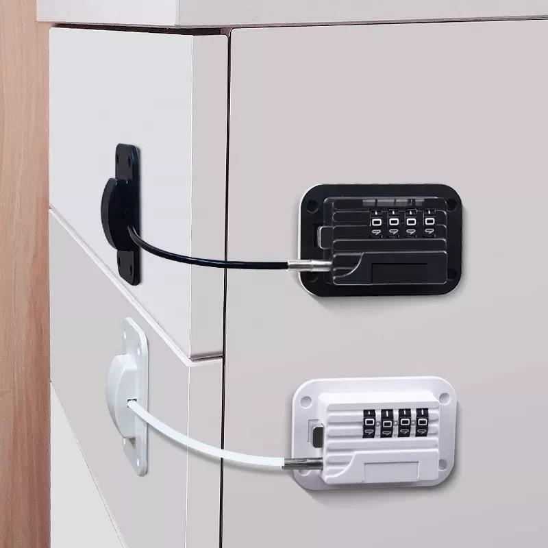 children window safety code lock made from high strength stainless steel, zinc alloy and ABS plastic material, this refrigerator lock is strong and durable, wont break easily.