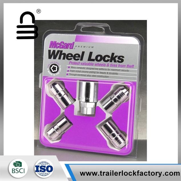 These easy-to-use, one-piece wheel locks function like regular lug nuts, but require a special key tool for installation and removal.; The steel collar on the user friendly key guides the key into the lock pattern.; The collar holds the key in alignment for easy installation and removal.; The computer generated key designs allow for an infinite number of key patterns.; The extra narrow pattern groove on the lock resists the intrusion of removal tools into the pattern.; Every wheel lock is fully machined from restricted chemistry steel made specifically for McGard and through-hardened for its unsurpassed level of security.; The plating process includes several layers of nickel and one layer of microporous chrome producing a superior finish while protecting against rust.;