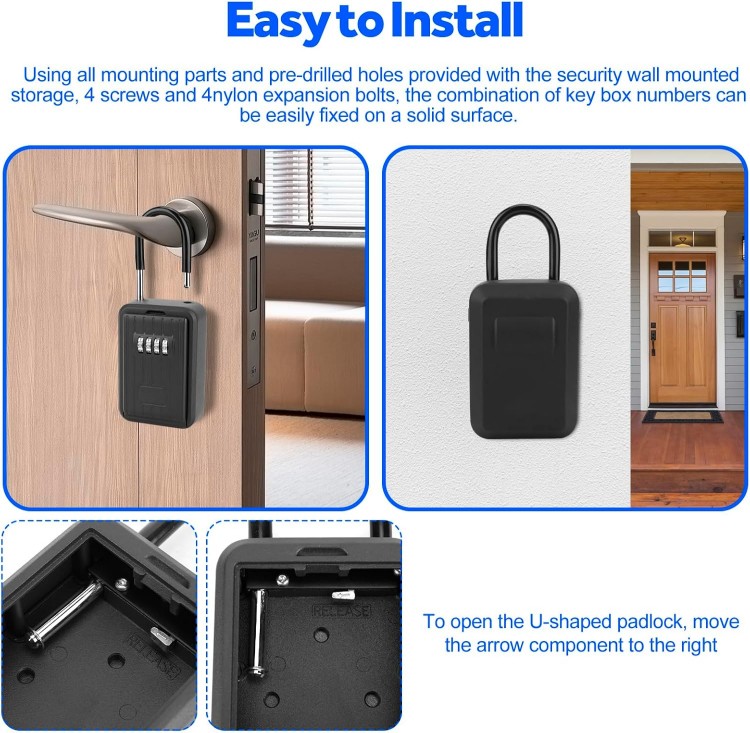 · 【Non-destructive Installation, Convenient and Fast】The Code House Key Storage Lock Box adopts a detachable shackle design, which can be easily hung on the door handle or metal fence without drilling, avoiding damage to the wall, and the installation is more convenient and fast. At the same time, the portable design is equipped with a simple reset password function, allowing you to easily set a new password without complicated steps.
