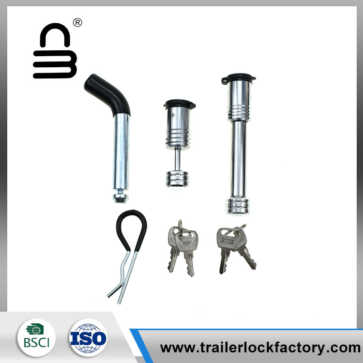 Trailer Receiver Lock Set. Dogbone style hitch receiver lock : Dia 5/8 inch pin with 3-1/2" effective length, perfect for Class III/IV 2", 2-1/2" hitch receiver tubes. Trailer Hitch Coupler Locking Pin: Dia 1/4 inch black tongue lock pin fits latch-type couplers with a max span up to 2-1/2 inch.