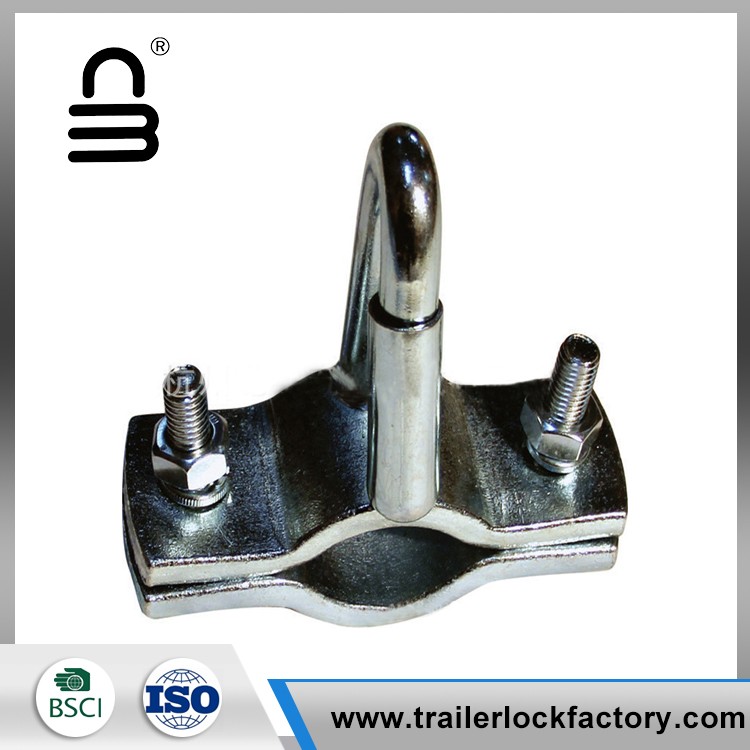 The Holder for Trailer Cable with Spring Eye in stock designed for secure mounting on the towing hitch, ensuring a hassle-free solution to prevent three-digit fines in the Netherlands and Switzerland. This screw-on holder allows for easy attachment beneath the ball head, offering a reliable and efficient means of securing the tear-off rope. This versatile holder is compatible with (almost) all rigid and removable tow bars, accommodating ball head diameters ranging from 30 to 50 mm. The strategically placed hole spacing of 75 mm ensures a sturdy and stable installation.