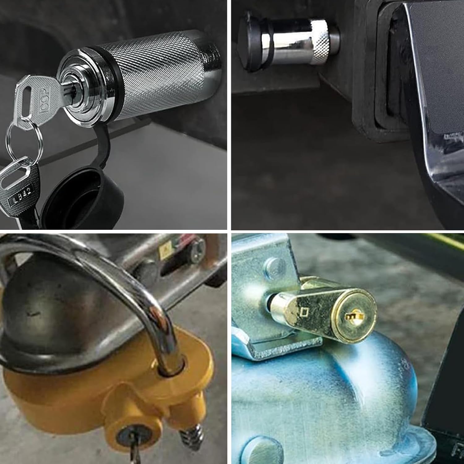 PACKAGE INCLUDES - Our Security Lock Set includes 1pc universal trailer ball lock, 1pc 1/2" and 5/8" bent trailer hitch locks, and a golden trailer coupler lock, 2pc Same Keys. The trailer lock kit can meet the vast majority of camping car lock needs.