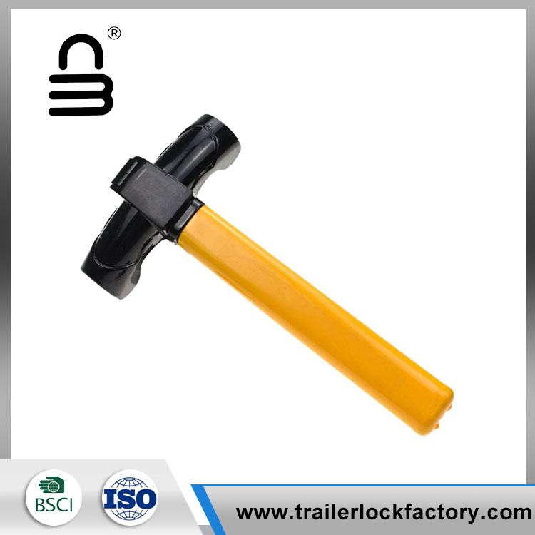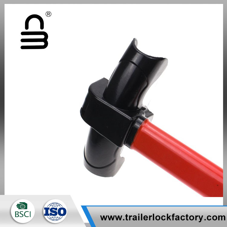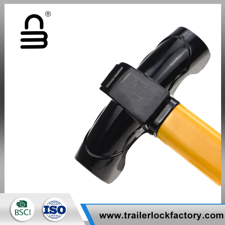 Security Rotary Steering Wheel Lock make of carbon steel, lock head make of carbon steel and plastic, external vinyl coated to protect interior. Bright yellow vinyl handle for high visibility, terrorize car thieves to move on. The lock cylinder is zinc alloy, lock head with sponge pad will not hurt your car steering wheel.