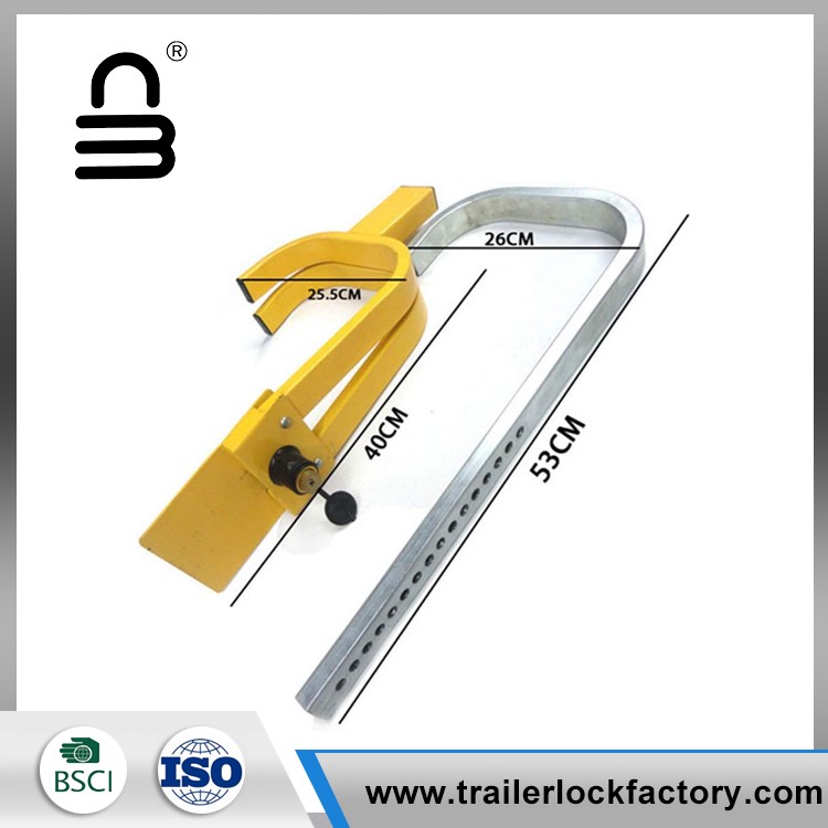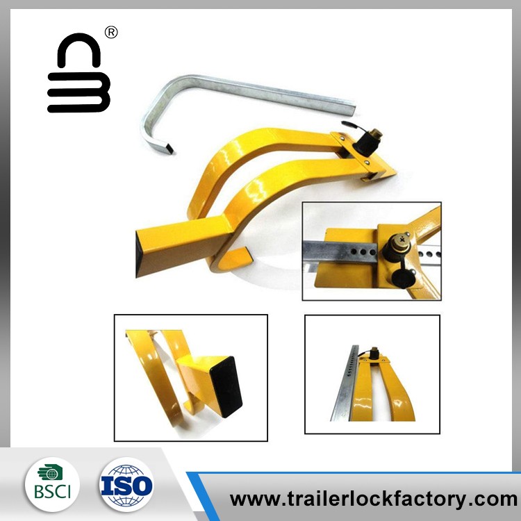 ADJUSTABLE AND PRACTICAL-----Wheel Chock Lock range of locks increase. Activity lock arm, adjustable from the lock.Crank operated allows you to adjusts to a wide range of tire types and sizes.
