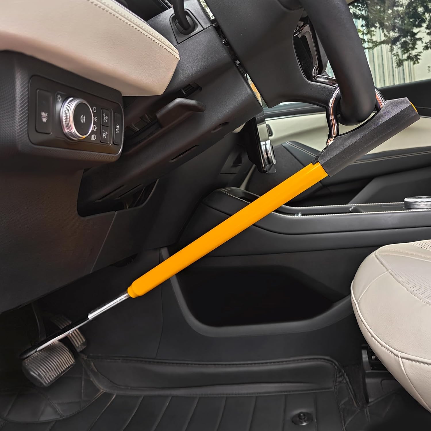 Steering Wheel Brake Pedal Lock for most models, max distance from the steering wheel to the pedals/clutch/brake is 27 inches, suitable for cars, trucks, vans, SUVs