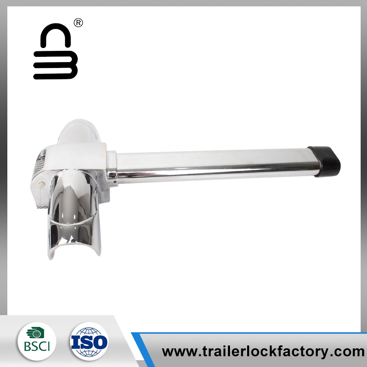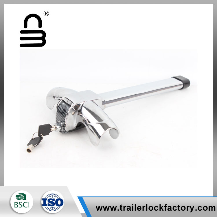 The mechanical steering wheel lock looks like a neat premium class ax in steel color. The device is a unique product that can be used to protect the car from theft and protect the owner from an attack.