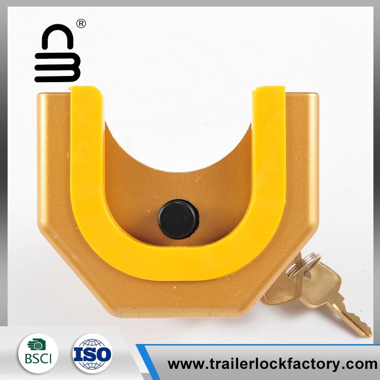 Trailer Coupling Hitch Lock is made of cast aluminium. Advanced locking mechanism that is not cracked by drilling, sawing, or breaking.