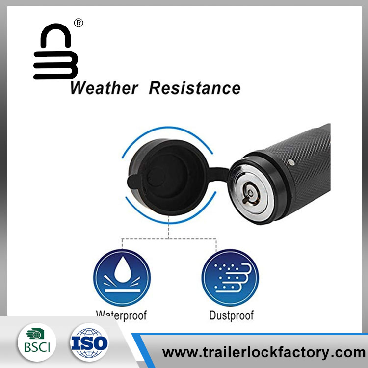 Trailer Coupling Pin Clutch Lock is Made of solid hardened steel, spray surface, with high strength, rust and corrosion resistance. Waterproof rubber cap protects the keyhole from water and dust and ensures longer service life