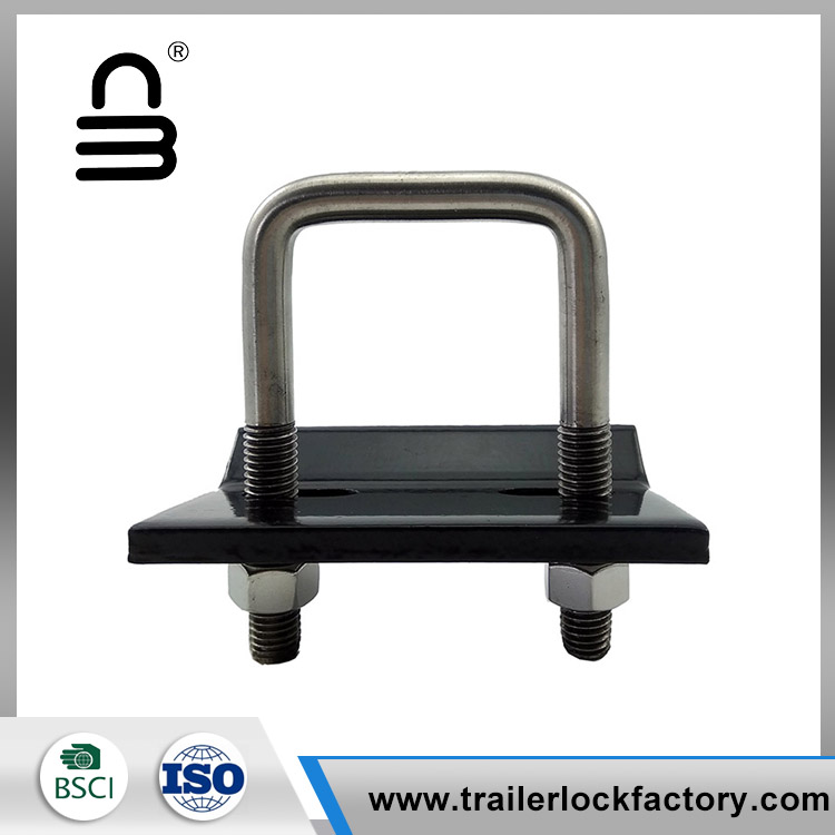 Trailer Hitch Tightener equiped with heavy duty φ0.4" U-bolt and 0.28" thick black powder coated plate anti-rattle stabilizer, can undertake all weather condition, rust free.