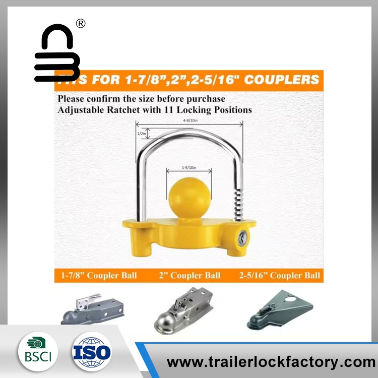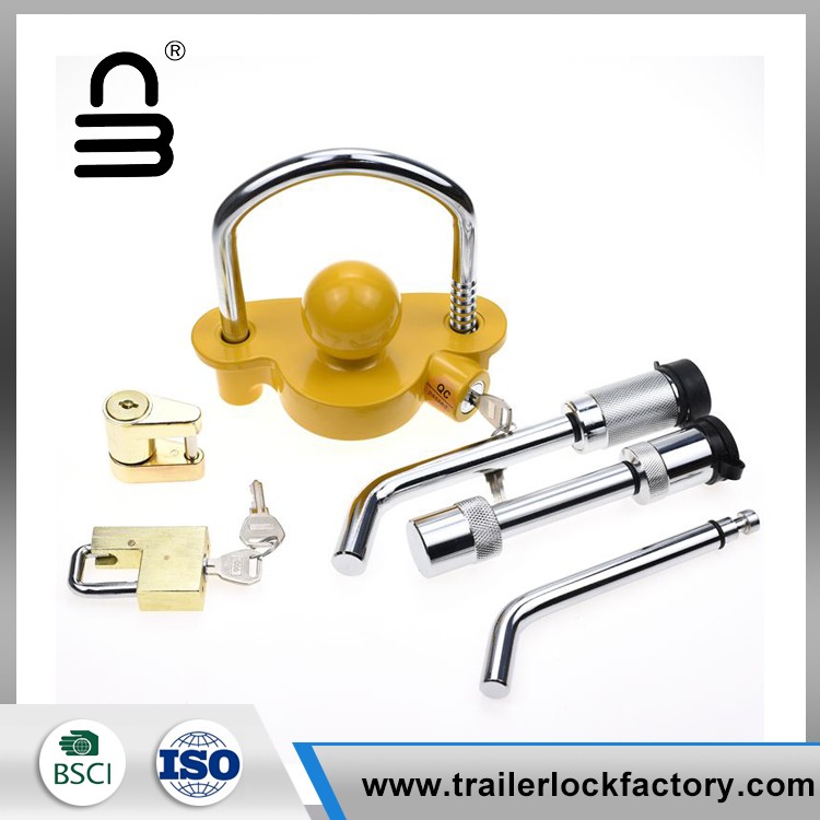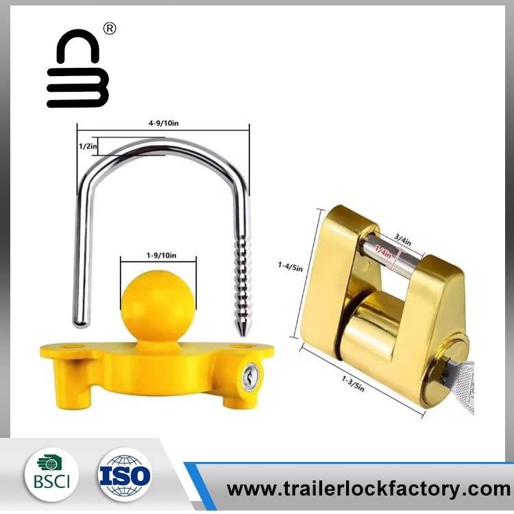 Universal Coupler Ball Lock includes: 1*yellow trailer locks ball hitch, 1*5/8" receiver trailer hitch pin lock,1*1/2" and 5/8" receiver hitch pin lock,2*1/4 Inch golden trailer hitch lock coupler. A set of three locks share a key, which optimizes the difficulty of finding the corresponding lock and saves unlocking time. This trailer hitch lock set can meet the vast majority of camping car lock needs.